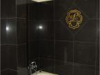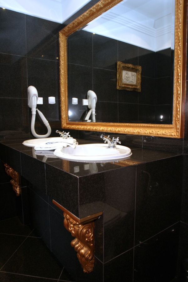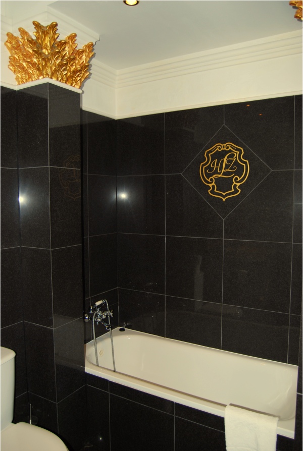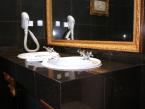 - Łazienka wykończona kolumnami i złoconymi głowicam